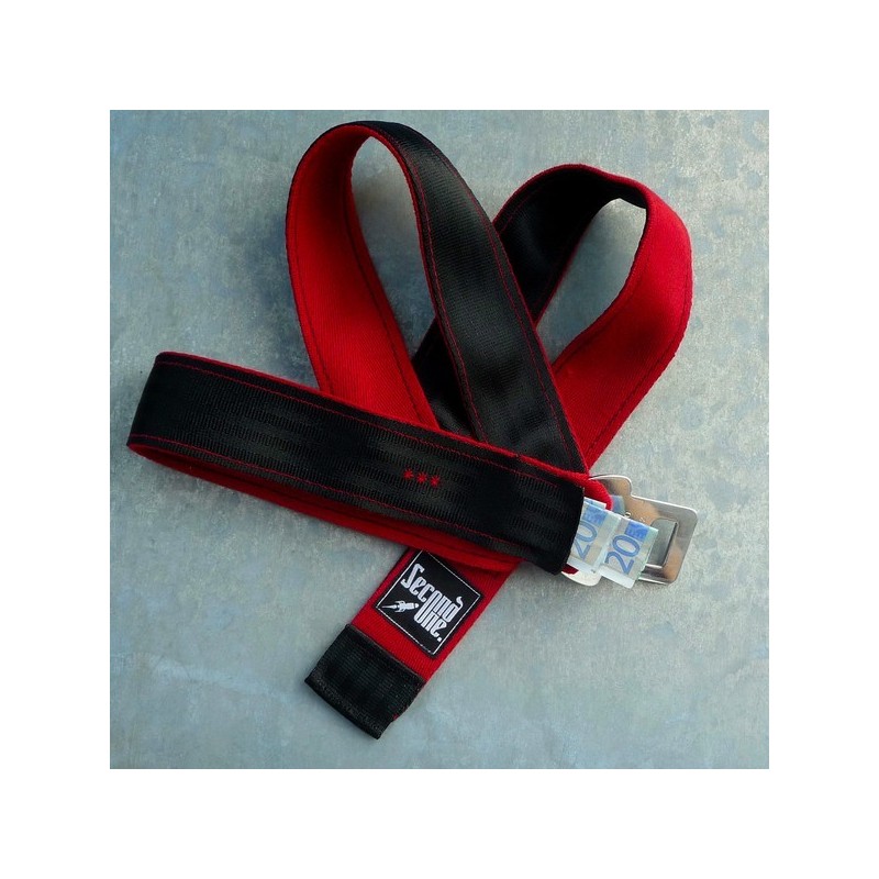 Sangle de ceinture pour boucle d'avion SecondOne. Modèle "BLACK N' RED".